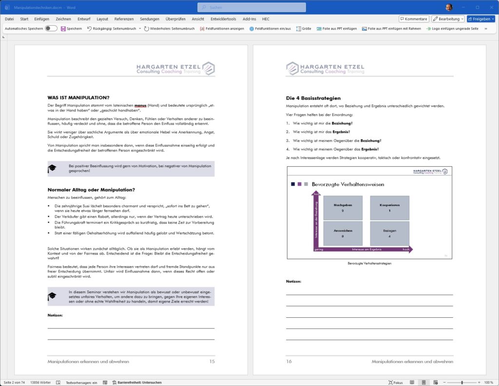 - Die Seminarunterlage umfasst ca. 80 Seiten